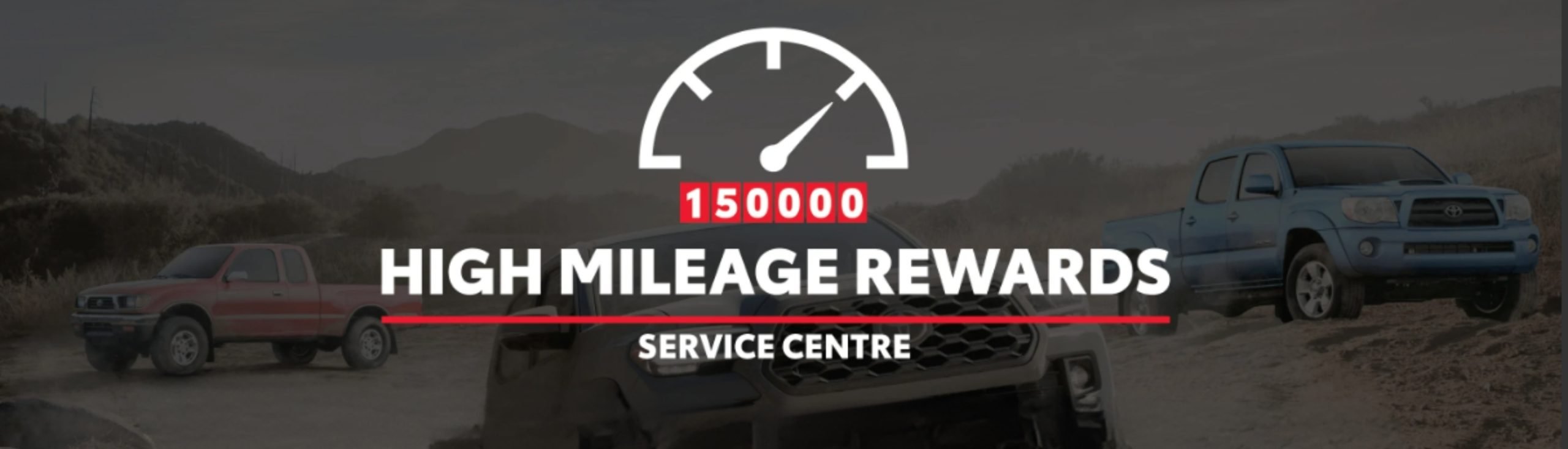 *High Mileage Rewards only applies to Toyota models with 150,000km or more. Applicable to labour only, no maintenance services, final repair, parts. Toyota Genuine Parts must be used during the repair in order for the discount to apply.